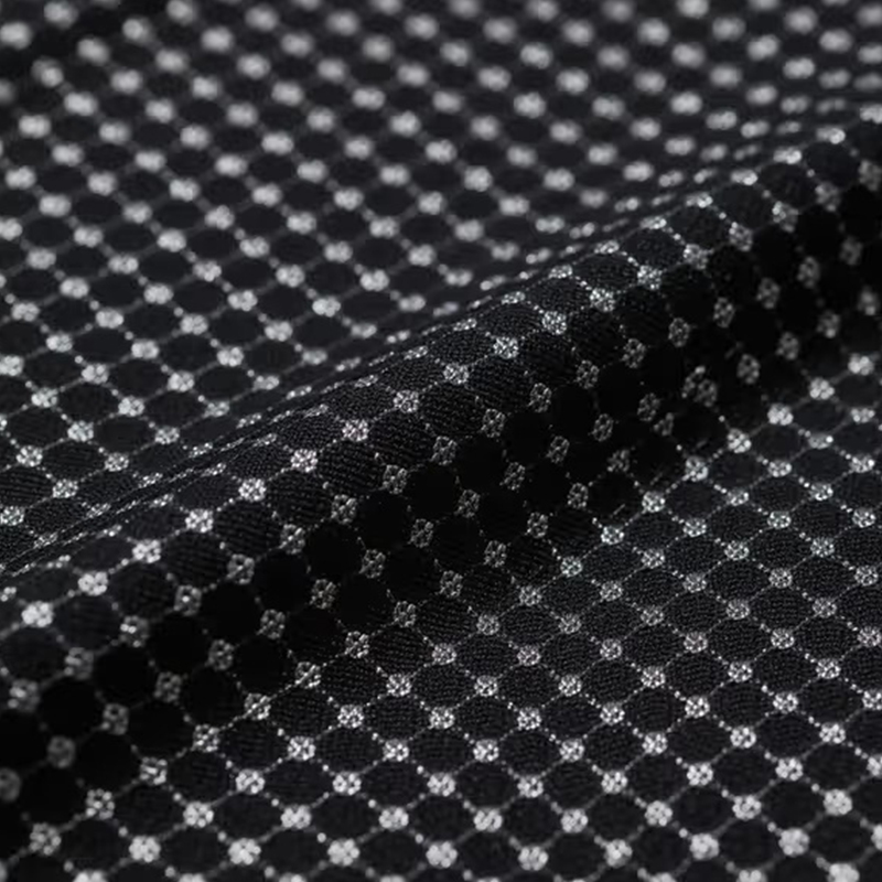Glacann Dot Mesh Birdseye Cloth struchtúr poll mogalra ponc uathúil. I gcomparáid le éadach súl traidisiúnta na n-éan, tá na poill d'éadach súile éanlaith ponc mogaill níos míne agus níos rialta. Feabhsaíonn an dearadh nuálaíoch seo go mór feidhm breathability agus perspiration an éadach, ag déanamh aerchúrsaíocht smoother, agus evaporates allais go tapa, a choinneáil ar an duine féin tirim agus compordach. Cibé acu le linn aclaíocht dhian nó in aimsir te, is féidir le éadach súile béar mogaill coinneáil allais a chosc go héifeachtach agus eispéireas compordach idéalach a sholáthar. Mar gheall ar a fheidhmíocht breathability agus ionsú taise agus perspiration, tá éadach Birdeye ponc mogalra an-oiriúnach le haghaidh táirgeadh éadaí spóirt, éadaí samhraidh agus caitheamh laethúil ócáideach. Mar gheall ar uigeacht éadrom agus teagmháil chompordach éadach súl geal ponc mogaill, is rogha iontach é le haghaidh caitheamh fadtéarmach, atá oiriúnach do dhíograiseoirí spóirt agus do dhaoine a bhfuil grá acu ar ghníomhaíochtaí lasmuigh. Cibé an trealamh spóirt é cosúil le héadaí reatha, pants yoga, éadaí folláine, nó éadaí éadroma cosúil le T-léinte samhraidh agus shorts, is féidir le éadach súl geal ponc mogaill compord deiridh a sholáthar agus míchompord a sheachaint de bharr cleachtadh fadtéarmach nó caitheamh i dteocht ard.
