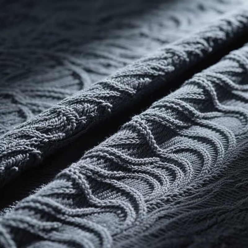 Is fabraic jacquard é Transfer Jacquard Fabric a úsáideann teicneolaíocht aistrithe nuálaíoch. Cuireann an dromchla patrúin log nó cuasach agus dronnach fíorálainn i láthair, rud a thugann mothú uathúil cisealaithe agus éifeacht tríthoiseach. Tríd an teicneolaíocht seo, déantar patrún na fabraice níos casta, rud a léiríonn tuiscint uathúil d'ealaín agus d'éifeachtaí amhairc, agus feabhas a chur ar an tuiscint iomlán ar dhearadh. Tá breathability den scoth agus teagmháil bhog ag an bhfabraic, agus tá sé oiriúnach go háirithe le haghaidh éadaí samhraidh a tháirgeadh, mar shampla geansaithe, gúnaí, etc. Féadann sé breathability agus compord a choinneáil go héifeachtach, oiriúnú don aimsir te, agus an duine féin a athnuachan. Déanann patrún uathúil agus uigeacht íogair na fabraice é freisin ina rogha iontach le haghaidh fabraicí maisiúla agus úsáidtear go forleathan é i réimse an mhaisiúcháin tí. Féadann sé atmaisféar ealaíne a chur le míreanna tí cosúil le cuirtíní, cúisíní, éadaí boird, etc., rud a fhágann go bhfuil an timpeallacht baile níos faiseanta agus chic.